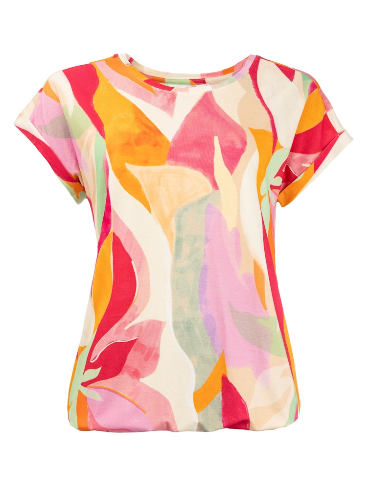 Shirt van N.E.D. in een all-over dessin met korte aangeknipte mouwen voorzien van omslag, ronde hals en een elastische zoom.