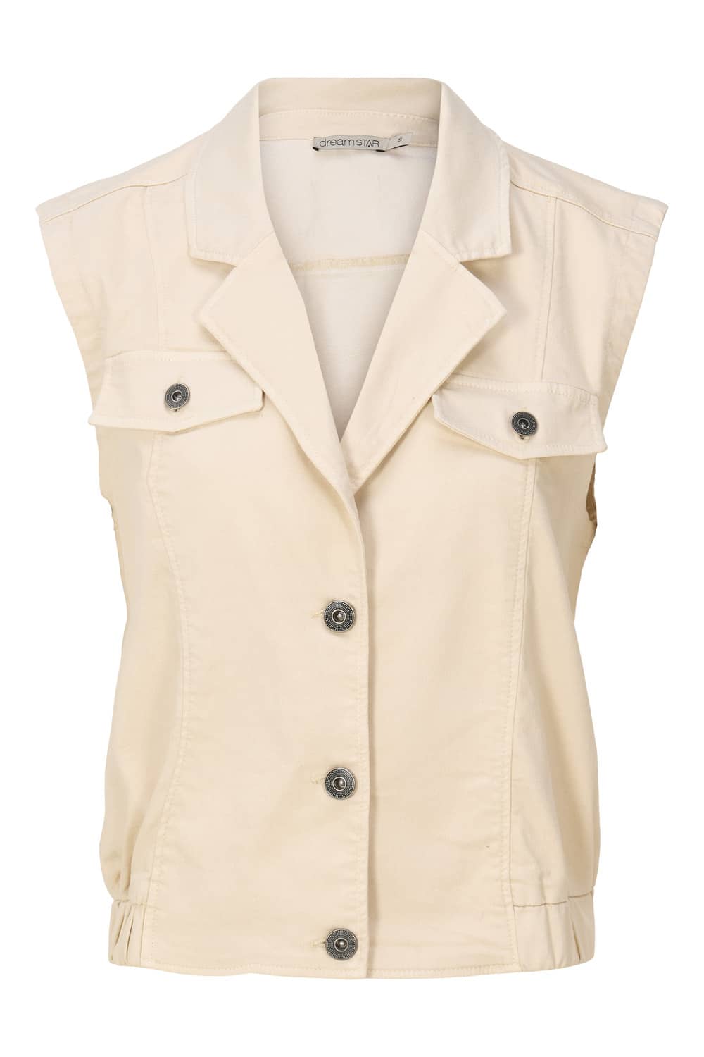 Gilet van Dreamstar met een reverskraag, knoopsluiting, klepzakken op de borst en een elastische zoom. Materiaal: Katoen 63%| polyester 34%| elastan 3%