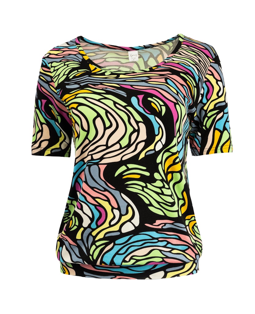 Shirt van N.E.D. in een all-over dessin met korte mouwen, ronde hals en een elastische boord aan de onderzijde. Materiaal: Viscose 95%| elastan 5%