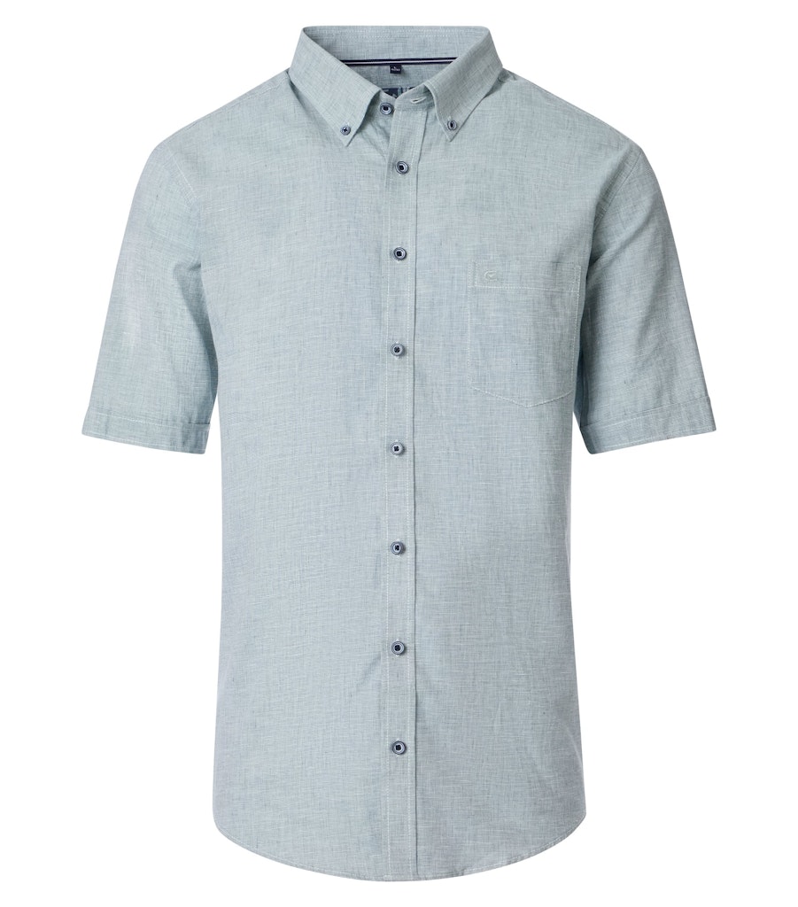 Casual fit linnen overhemd van Casa Moda met korte mouwen, button-down kraag, knoopsluiting en een opgestikte borstzak. Materiaal: Linnen 55%| katoen 45%