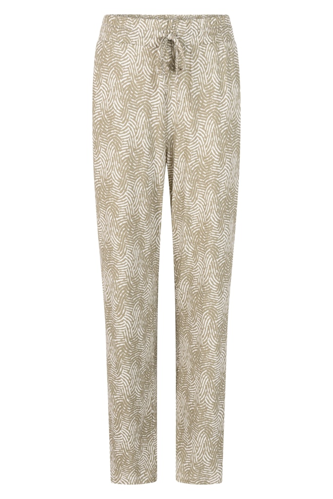 Broek van Zoso in een all-over dessin met rechte pijpen, steekzakken, paspelzakken aan de achterzijde en een elastische tailleband voorzien van trekkoord.