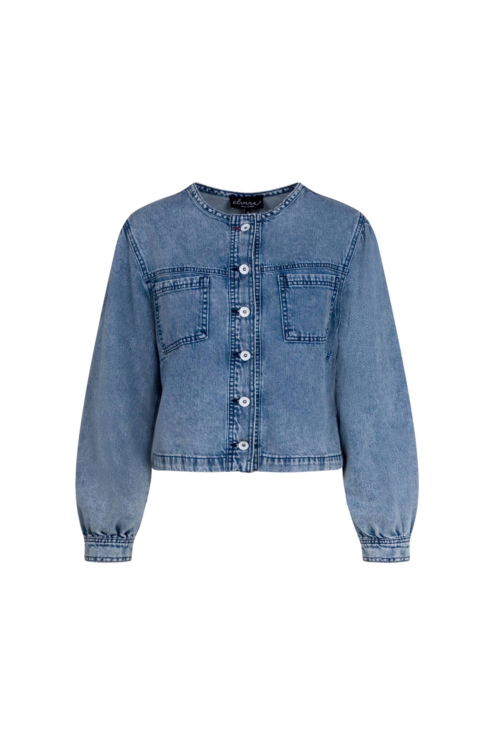 Kort denim jacket van Elvira met lange mouwen, ronde hals, knoopsluiting en opgestikte borstzakken.
