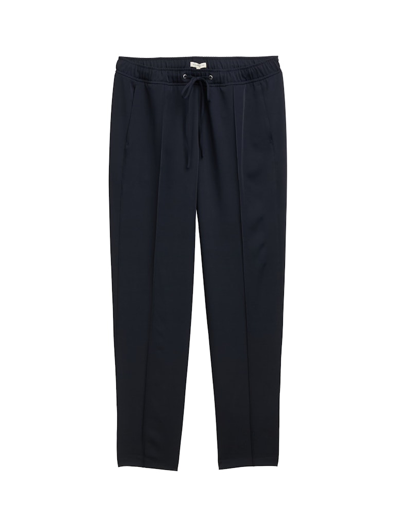 Broek van Tom Tailor met steekzakken, pintucknaad aan de voorzijde en een elastische tailleband voorzien van trekkoord.