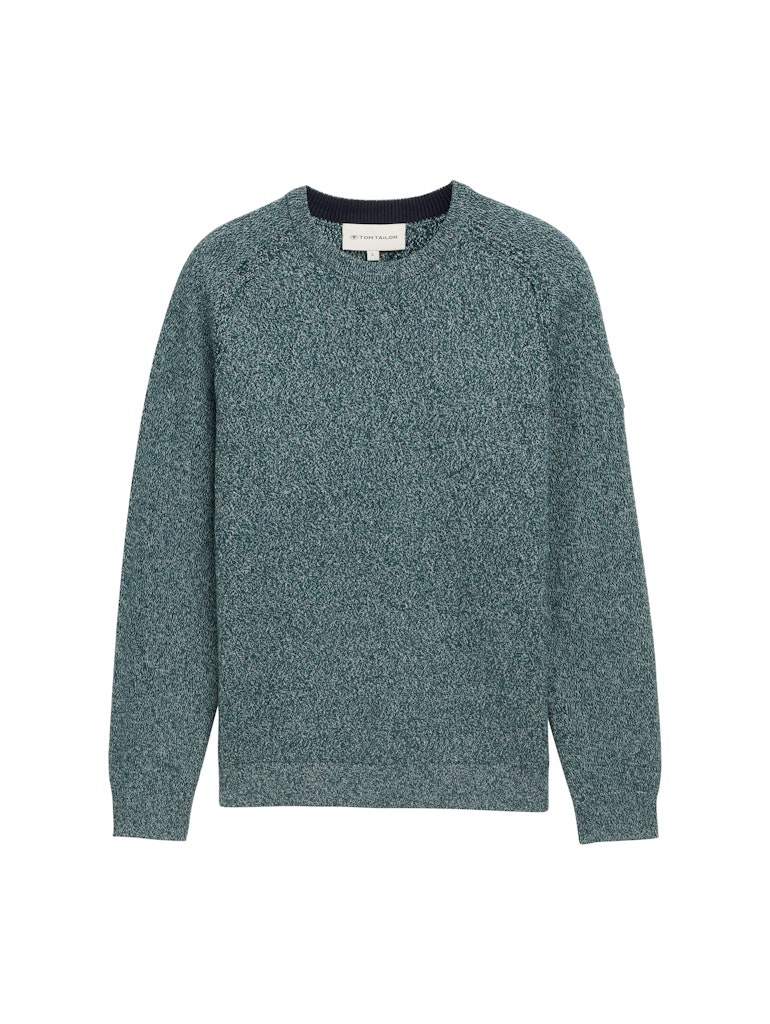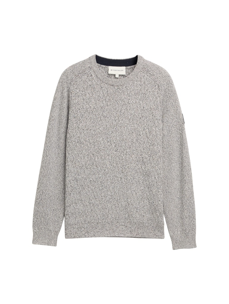 Gemêleerde trui van Tom Tailor met lange mouwen, ronde hals, logobadge op de linkermouw en ribgebreide boorden. Materiaal: Katoen 100%