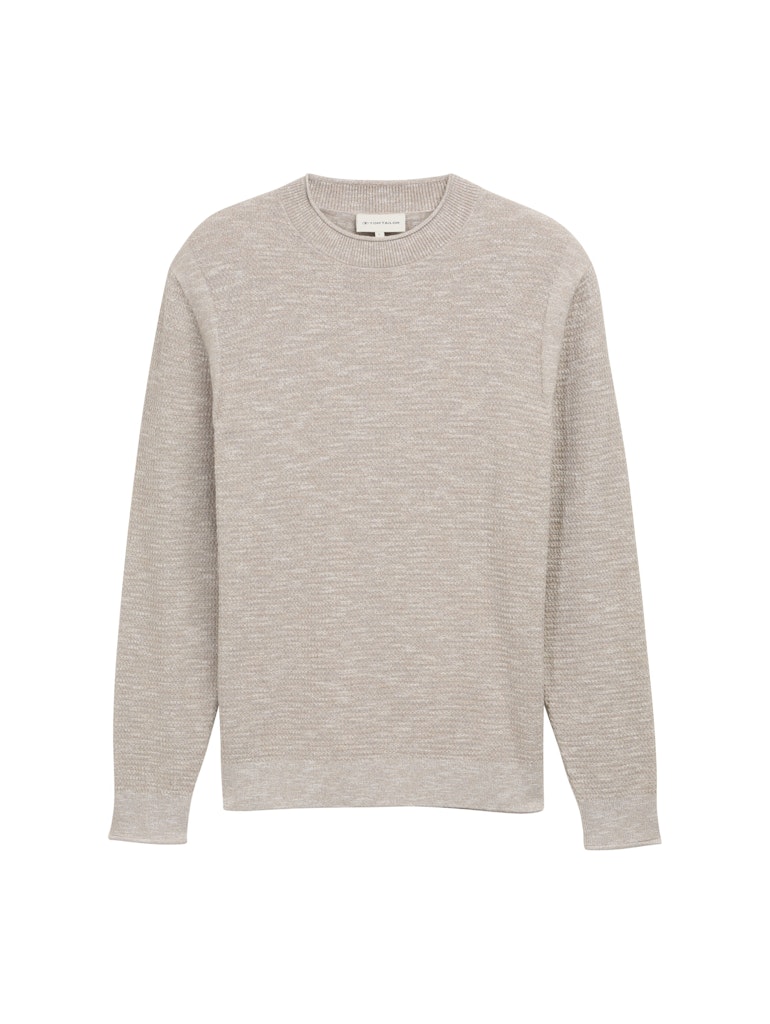 Gemêleerde trui van Tom Tailor met een structuur, lange mouwen, ronde hals en licht gerolde zoomranden.