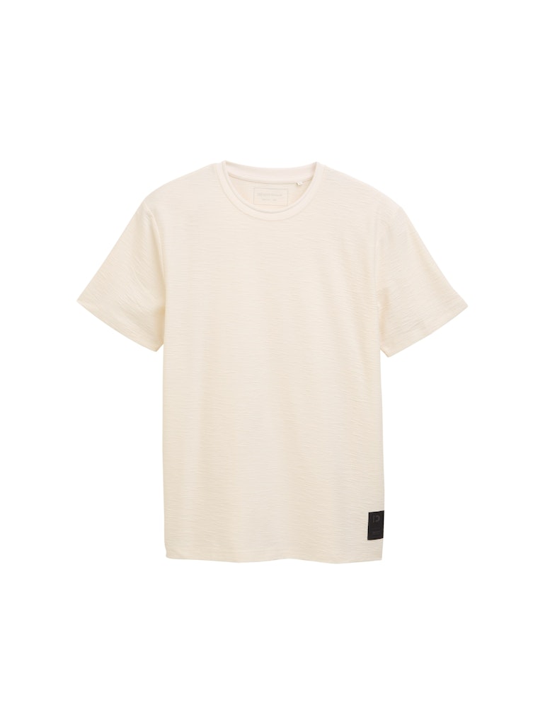 T-shirt van Tom Tailor Denim in een structuur dessin met korte mouwen en een ronde hals.
