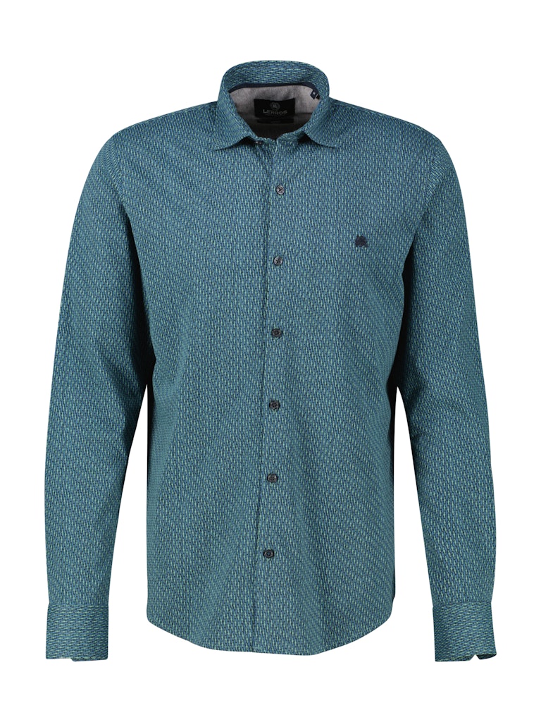 Jersey overhemd van Lerros in een all-over dessin met een knoopsluiting, lange mouwen, manchetten met twee knopen, sportieve haaienkraag en geborduurd logo op de linkerborst. Materiaal: Katoen 100%