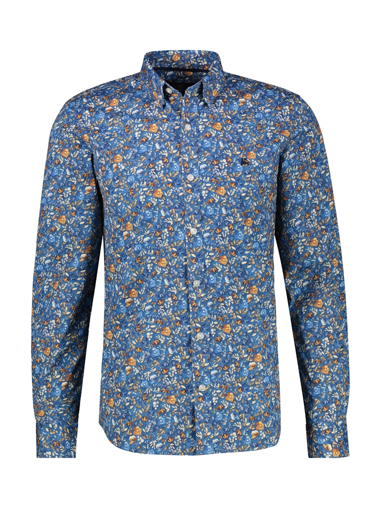 Overhemd van Lerros in een all-over dessin met lange mouwen, kraag, knoopsluiting en een geborduurd logo op de linkerborst.