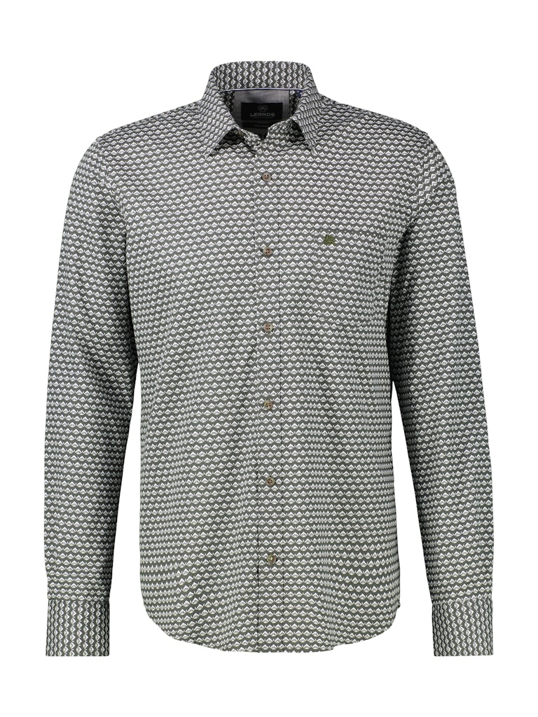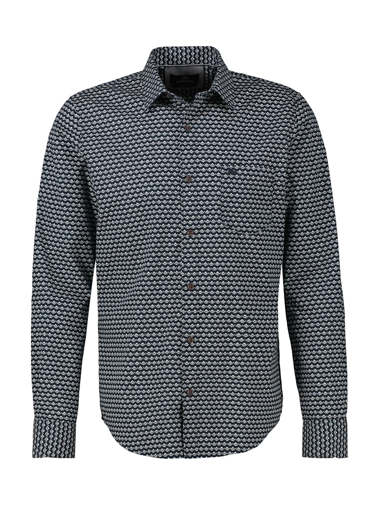 Overhemd van Lerros in een all-over dessin met lange mouwen, kraag, knoopsluiting en een opgestikte borstzak. Materiaal: Katoen 100%