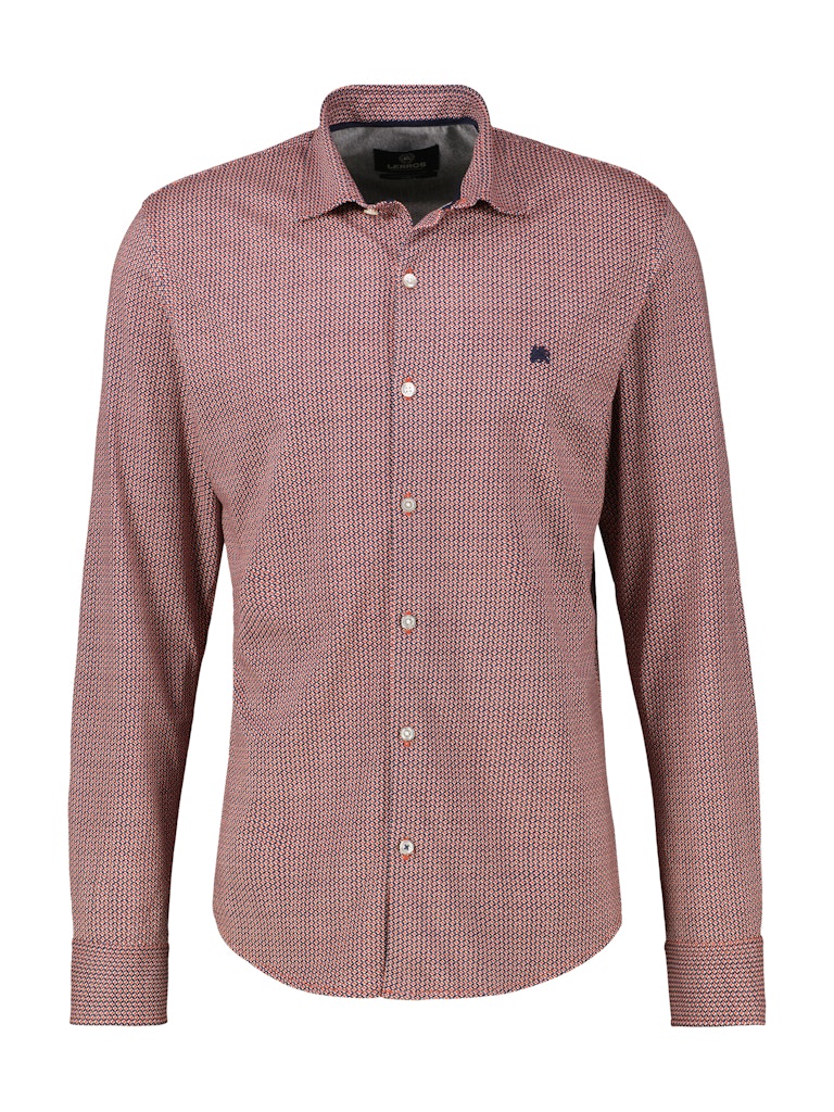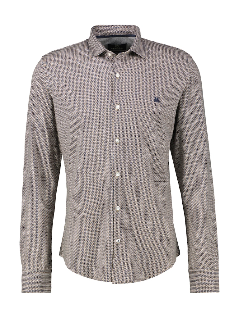 Overhemd van Lerros in een subtiel ruit dessin met lange mouwen, kraag, knoopsluiting en een geborduurd logo op de linkerborst.