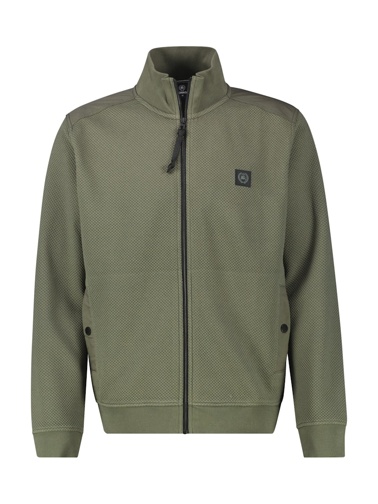 Vest van Lerros in een structuur dessin met lange mouwen, ritssluiting, opstaande kraag, steekzakken, logobadge op de linkerborst en ribgebreide boorden.