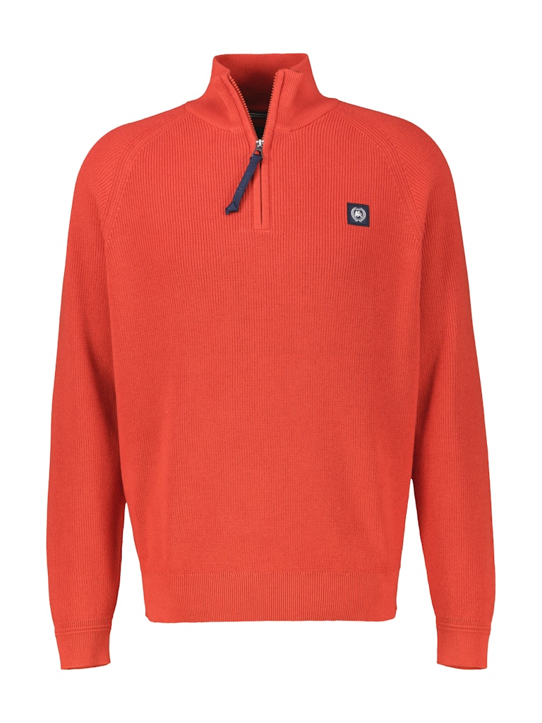 Trui van Lerros met lange mouwen, opstaande kraag voorzien van korte ritssluiting, logobadge op de linkerborst en ribgebreide boorden.