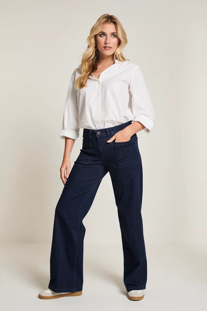 Jeans van Para Mi met wijde pijpen, opgestikte voor- en achterzakken, knoop- en ritssluiting en een hoge taille.
