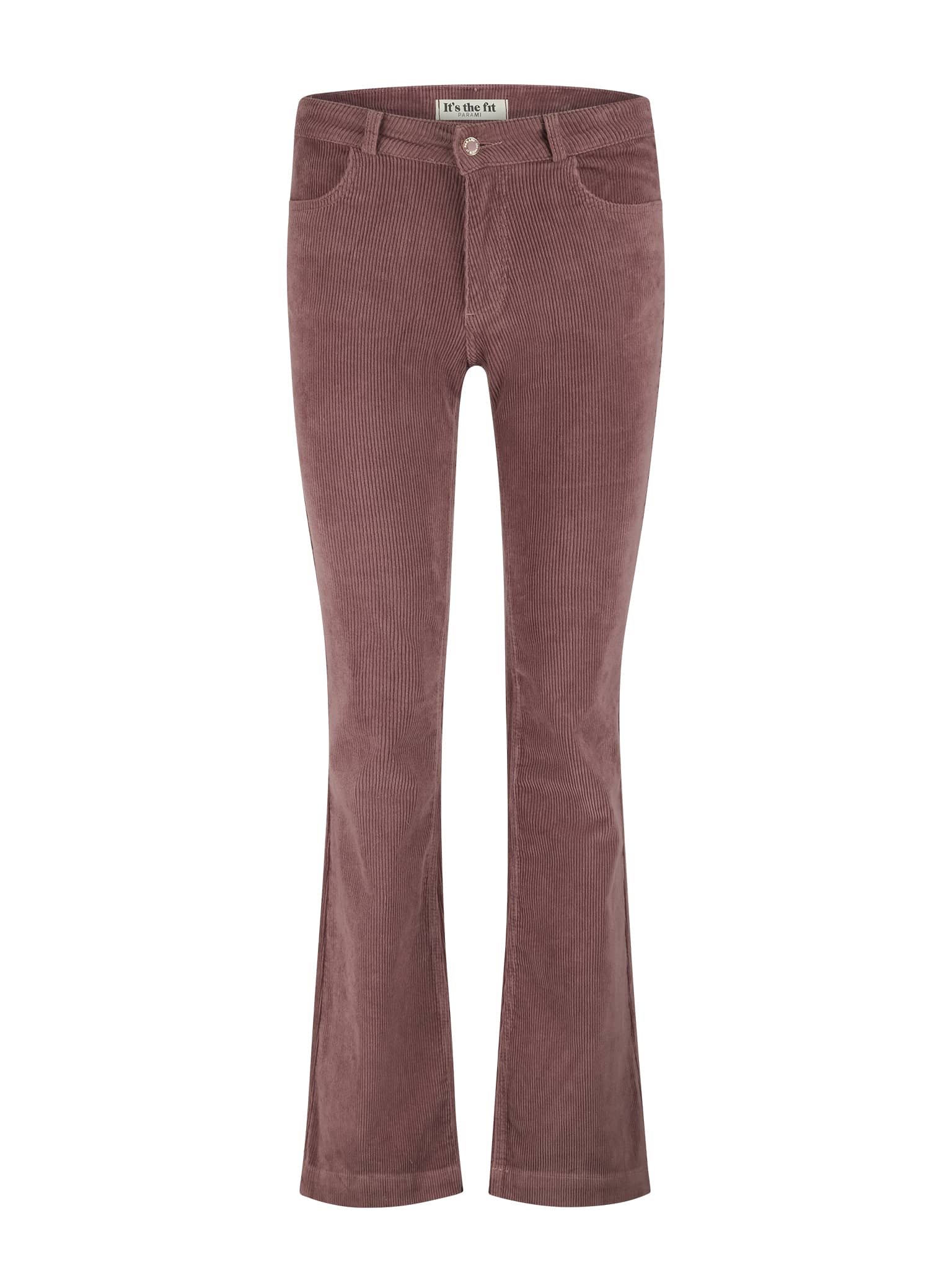 4-pocket corduroy broek van Para Mi met uitlopende pijpen en een knoop- en ritssluiting. Materiaal: Katoen 98%| elastan 2%