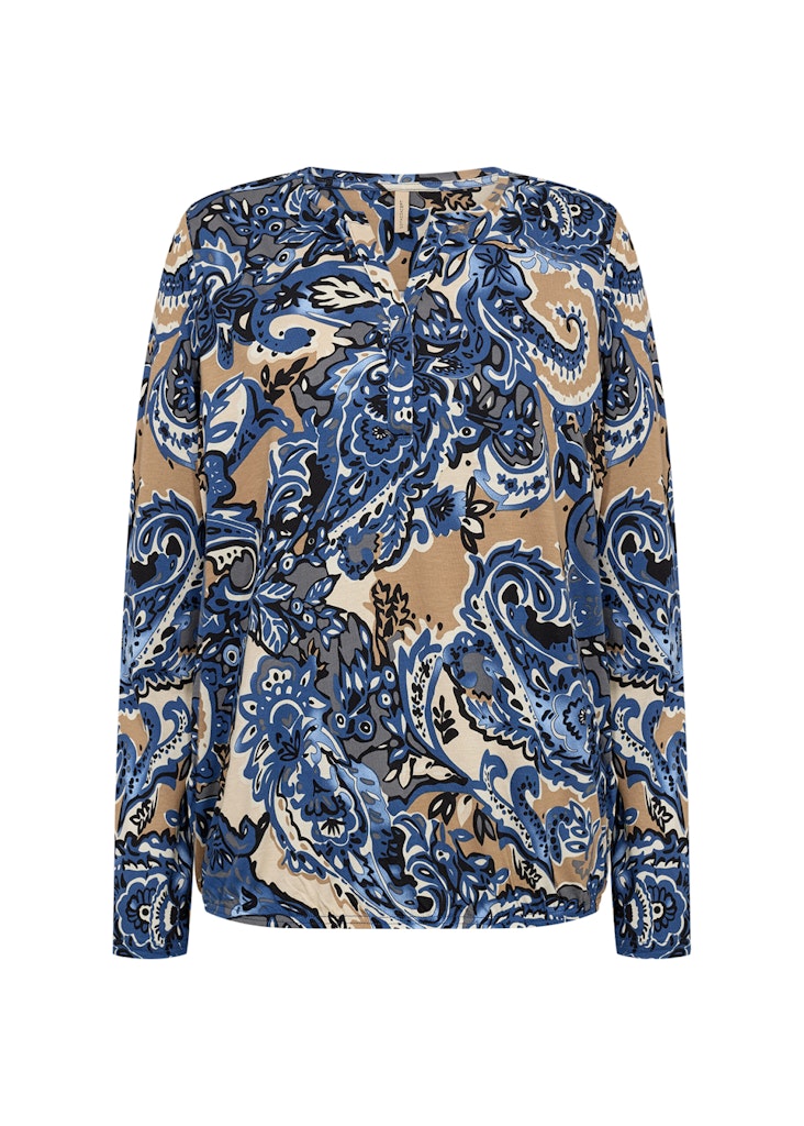 Blouse van Soya Concept in een all-over dessin met lange mouwen en en V-hals.