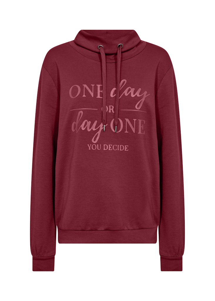 Sweater van Soya Concept met lange mouwen, opstaande kraag voorzien van trekkoord, tekstprint op de borst en ribgebreide boorden.