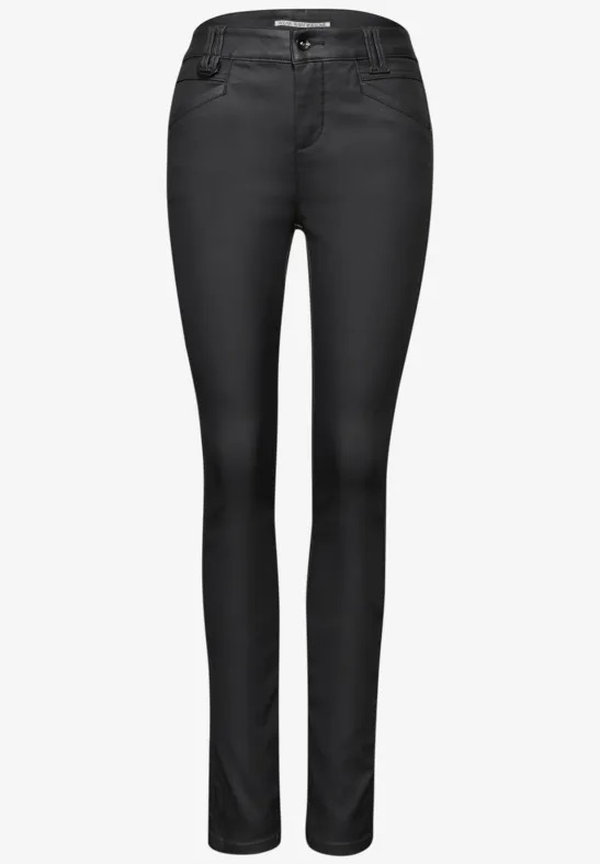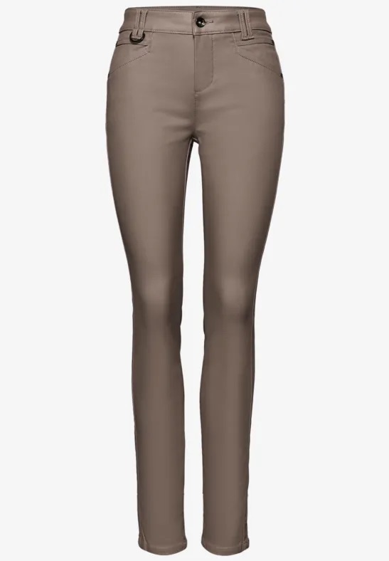 Gecoate 5-pocket broek van Street One met slim legs, knoop- en ritssluiting en een middelhoge taille.