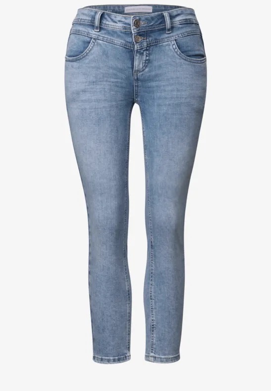 Enkellange, 5-pocket slim fit jeans van Street One met een dubbel knoop- en ritssluiting.