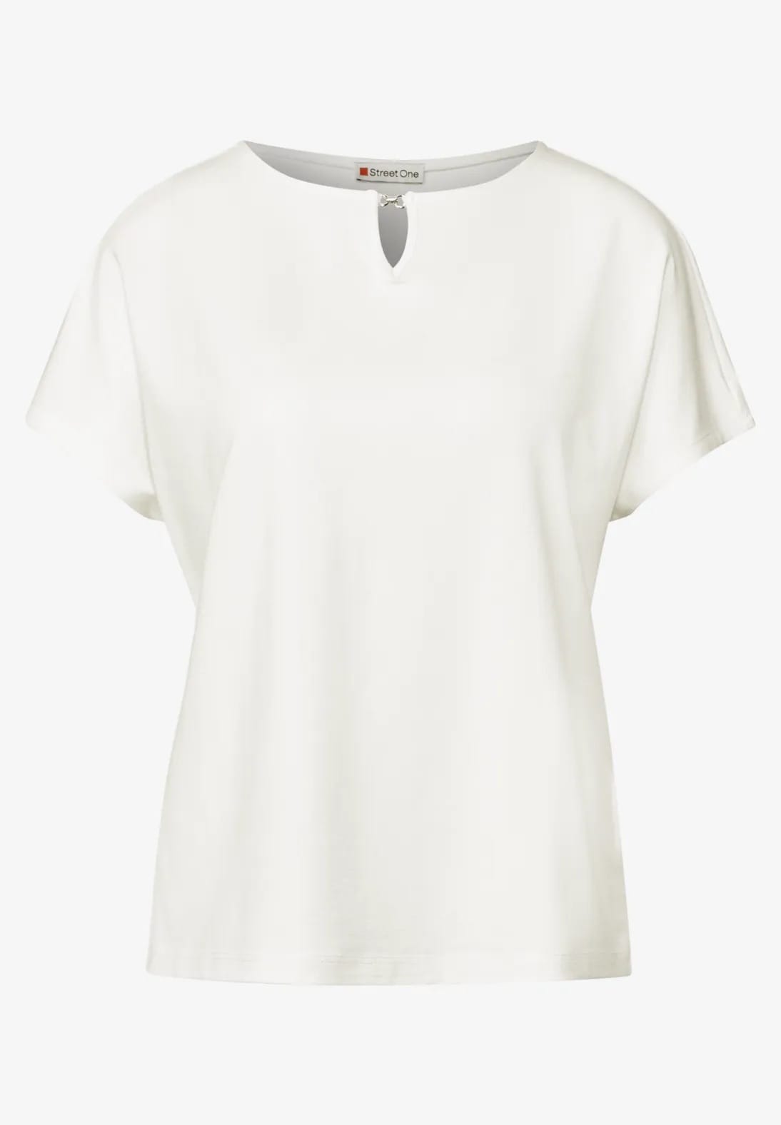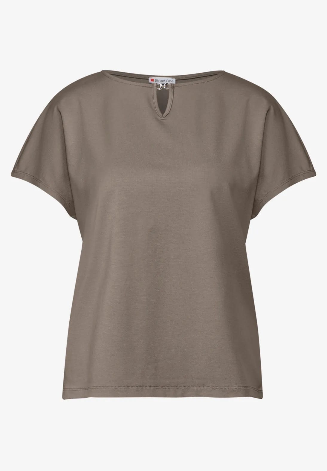 Shirt van Street One met korte mouwen en een boothals voorzien van decoratieve uitsnede.