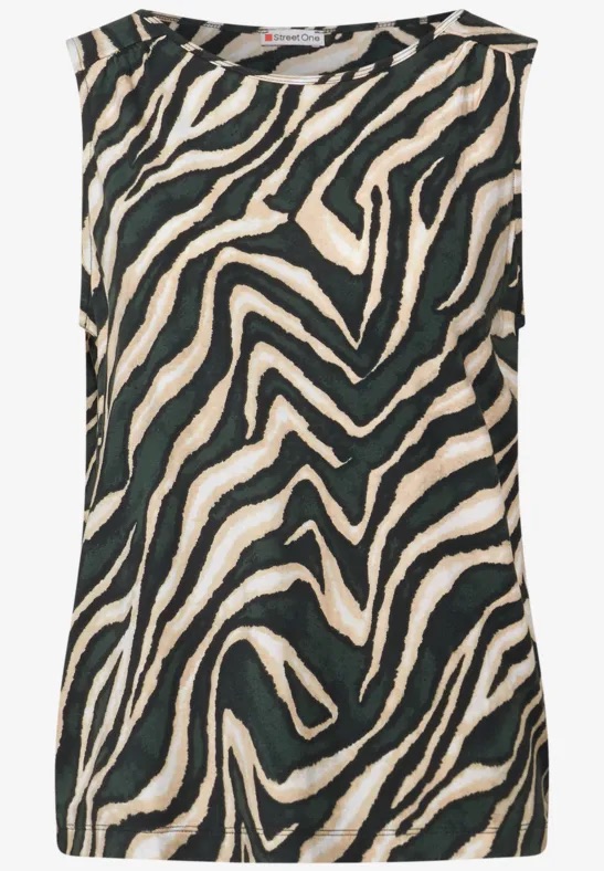Mouwloze top van Street One in een all-over dessin met een boothals. Materiaal: Viscose 95%| elastan 5%