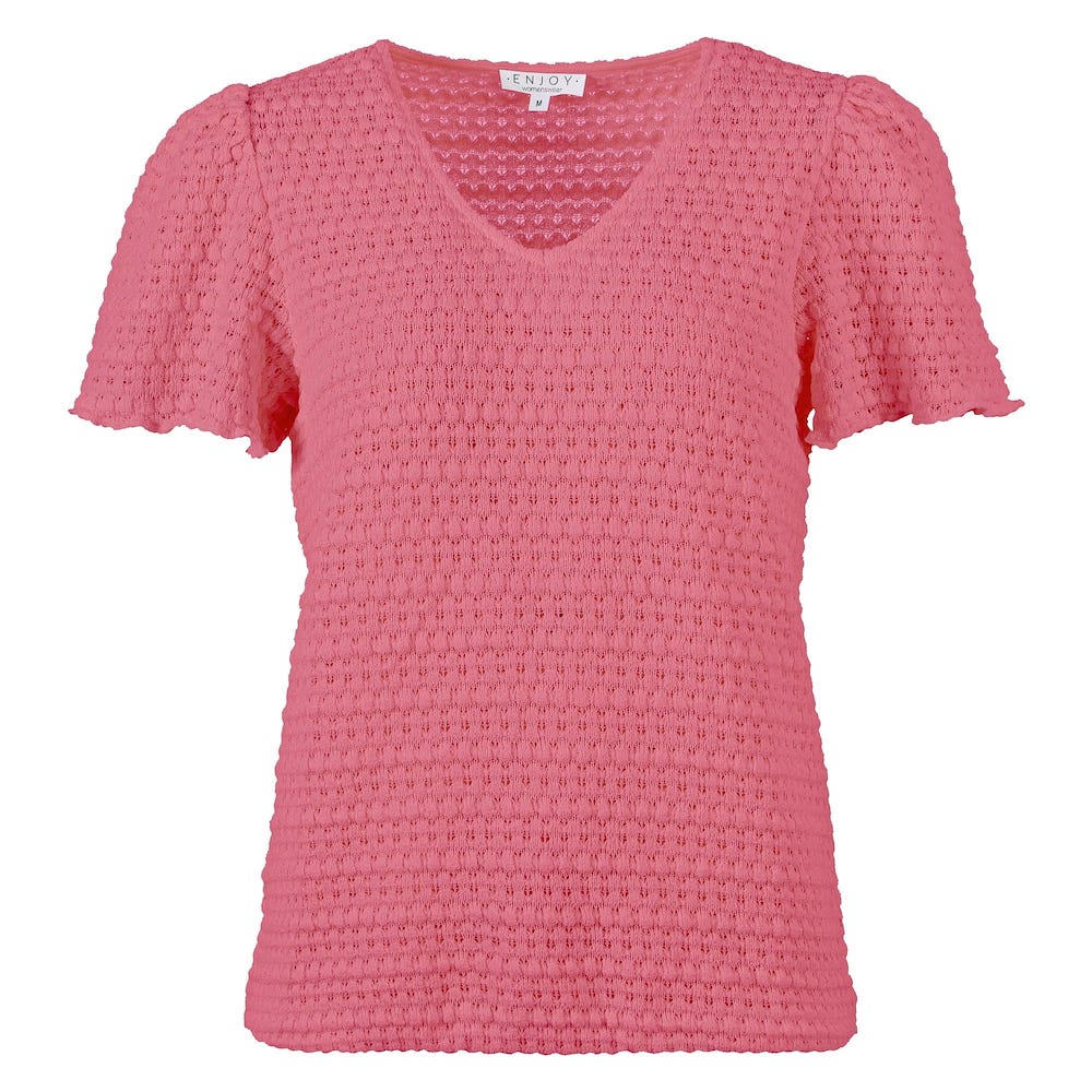 Shirt van Enjoy in een structuur dessin met korte wijde mouwen en een V-hals.