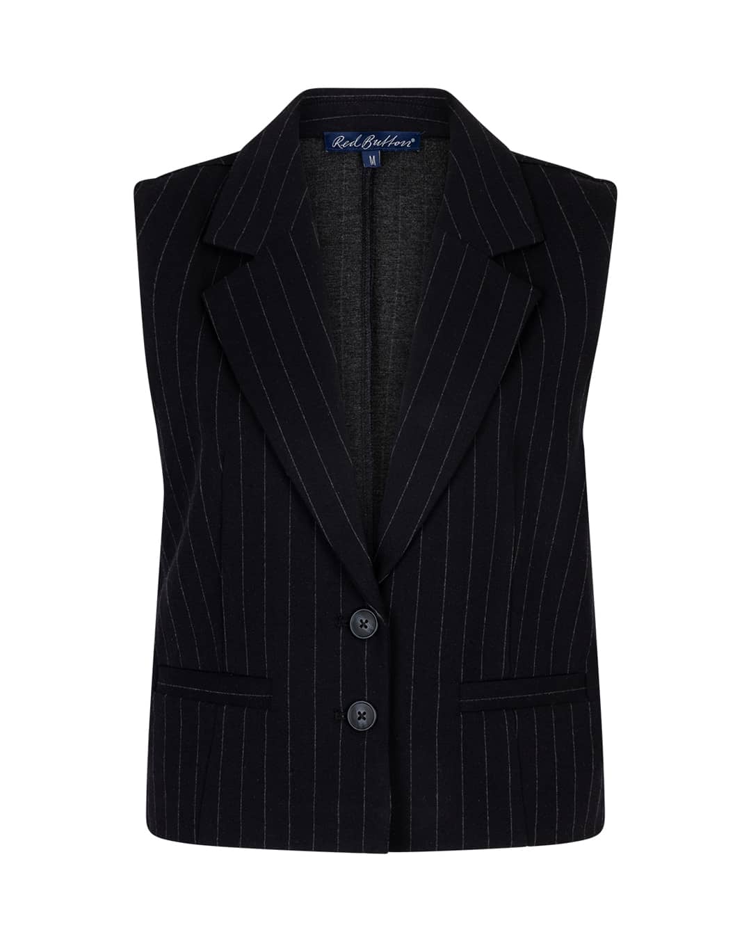 Kruitstreep gilet van Red Button met een reverskraag, knoopsluiting en twee paspelzakken. Materiaal: Viscose 63%| polyamide 33%| elastan 4%
