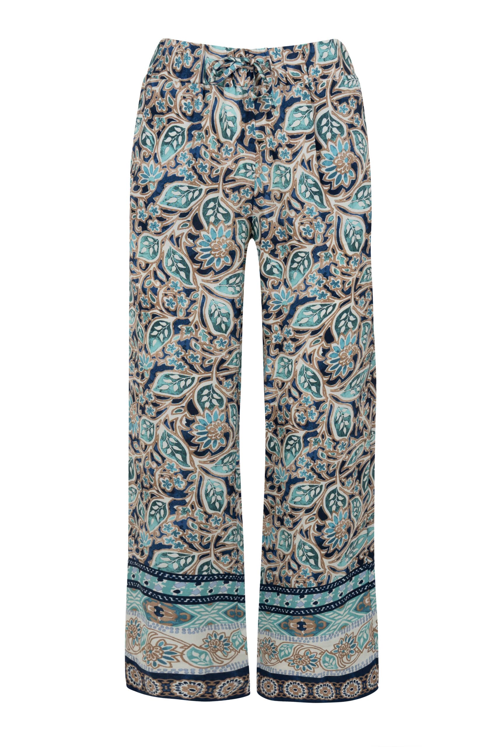 Broek van Elvira met wijde pijpen, steekzakken en een elastische tailleband voorzien van trekkoord. Materiaal: Rayon 55%| viscose 45%