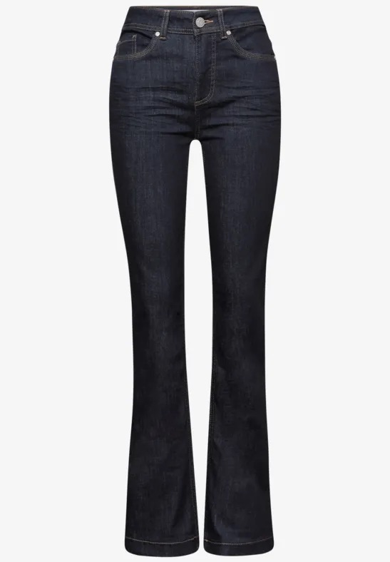 5-pocket bootcut jeans van Street One met een knoop- en ritssluiting en een hoge taille. Materiaal: Katoen 72%| polyester 27%| elastan 1%