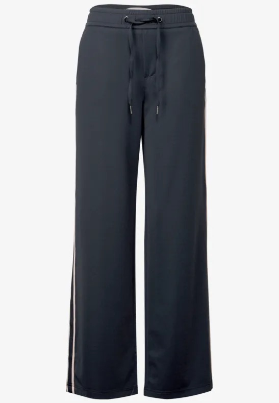 Broek van Street One met rechte pijpen, steekzakken, twee paspelzakken aan de achterzijde, contrasterende bies aan de zijnaden en een elastische tailleband voorzien van trekkoord.