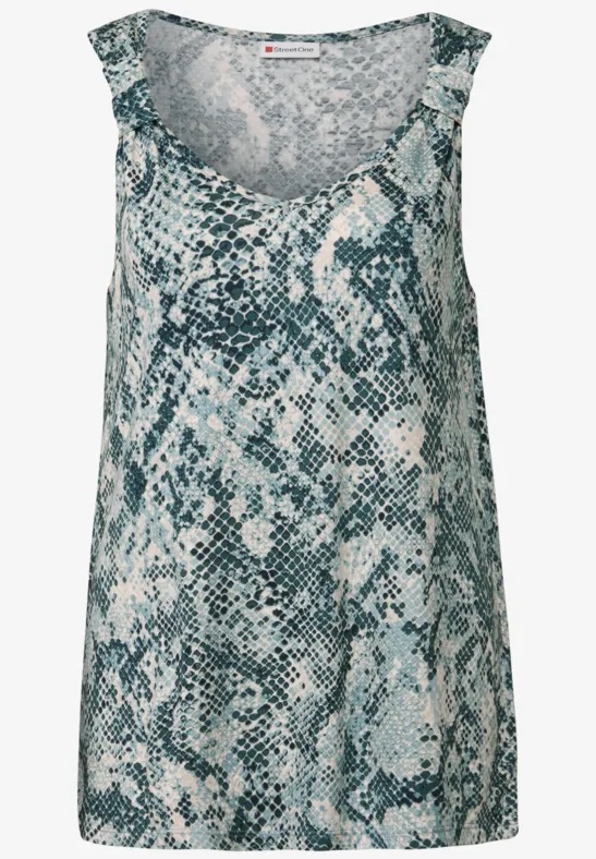 Mouwloze jersey top van Street One in een all-over dessin met een ronde hals en geknoopte bandjes.
