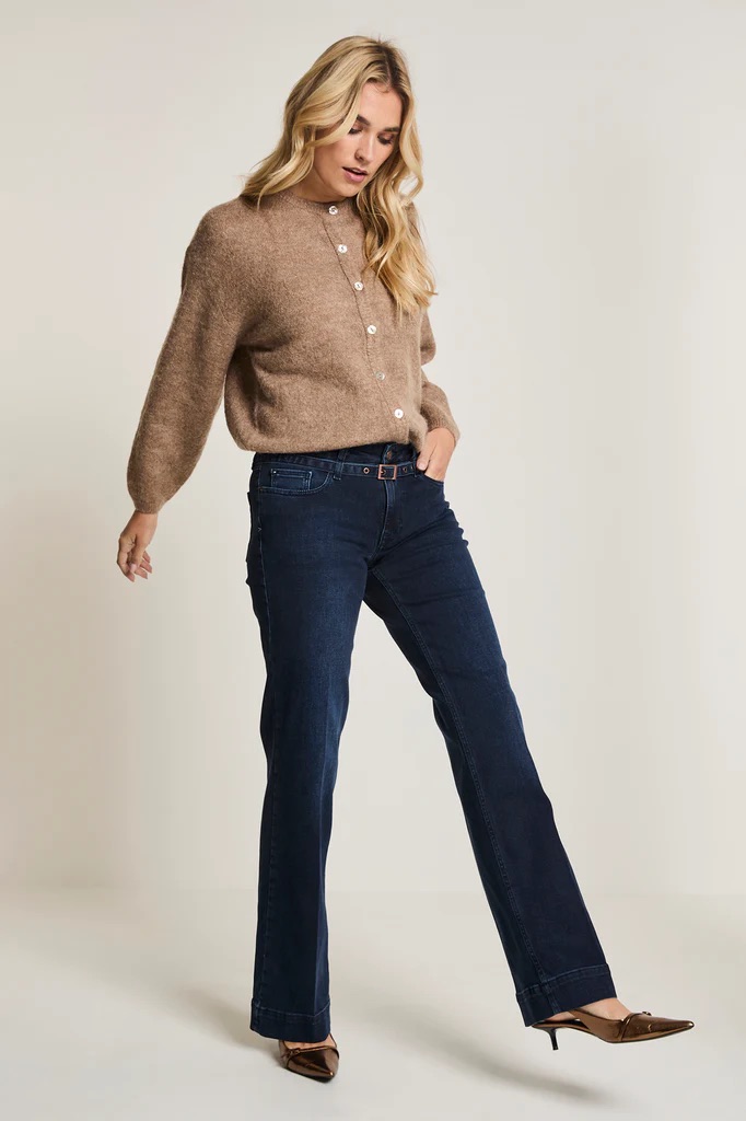 5-pocket jeans van Para Mi met wijde pijpen, knoop- en ritssluiting en een smal riempje in de taille.