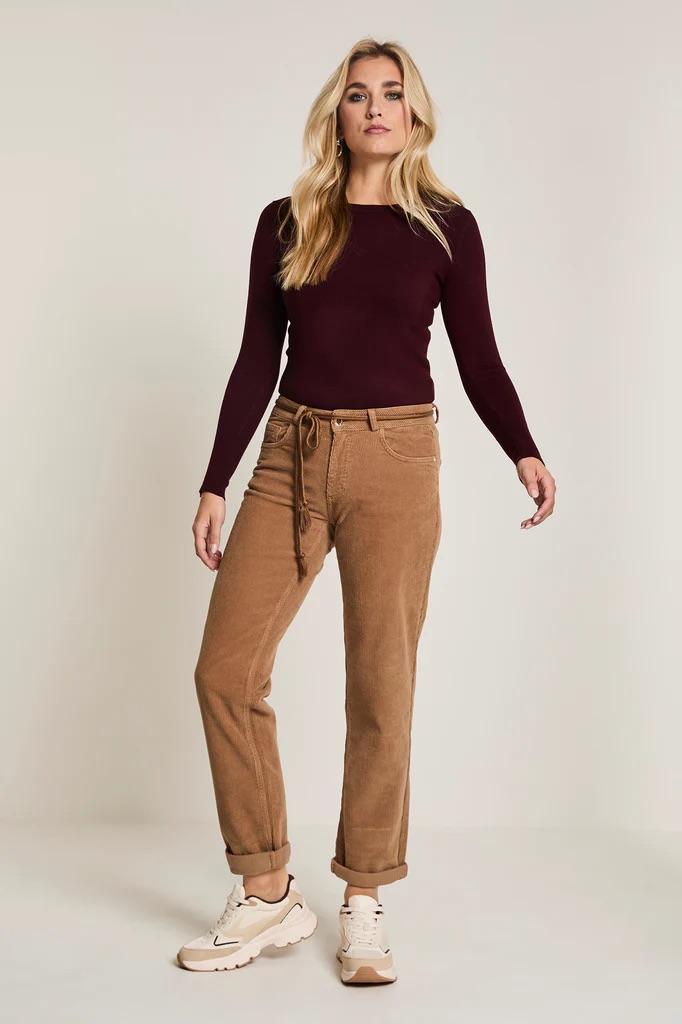 5-pocket vintage corduroy broek van Para Mi met een knoop- en ritssluiting, gevlochten koord door de riemlusssen en een omslag in de pijpen. Materiaal: Katoen 98%| elastan 2%