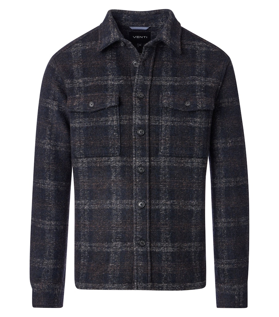 Geruite overshirt van Venti met lange mouwen, kraag, knoopsluiting en opgestikte klepzakken op de borst. Materiaal: Polyester 70%| wol 30%