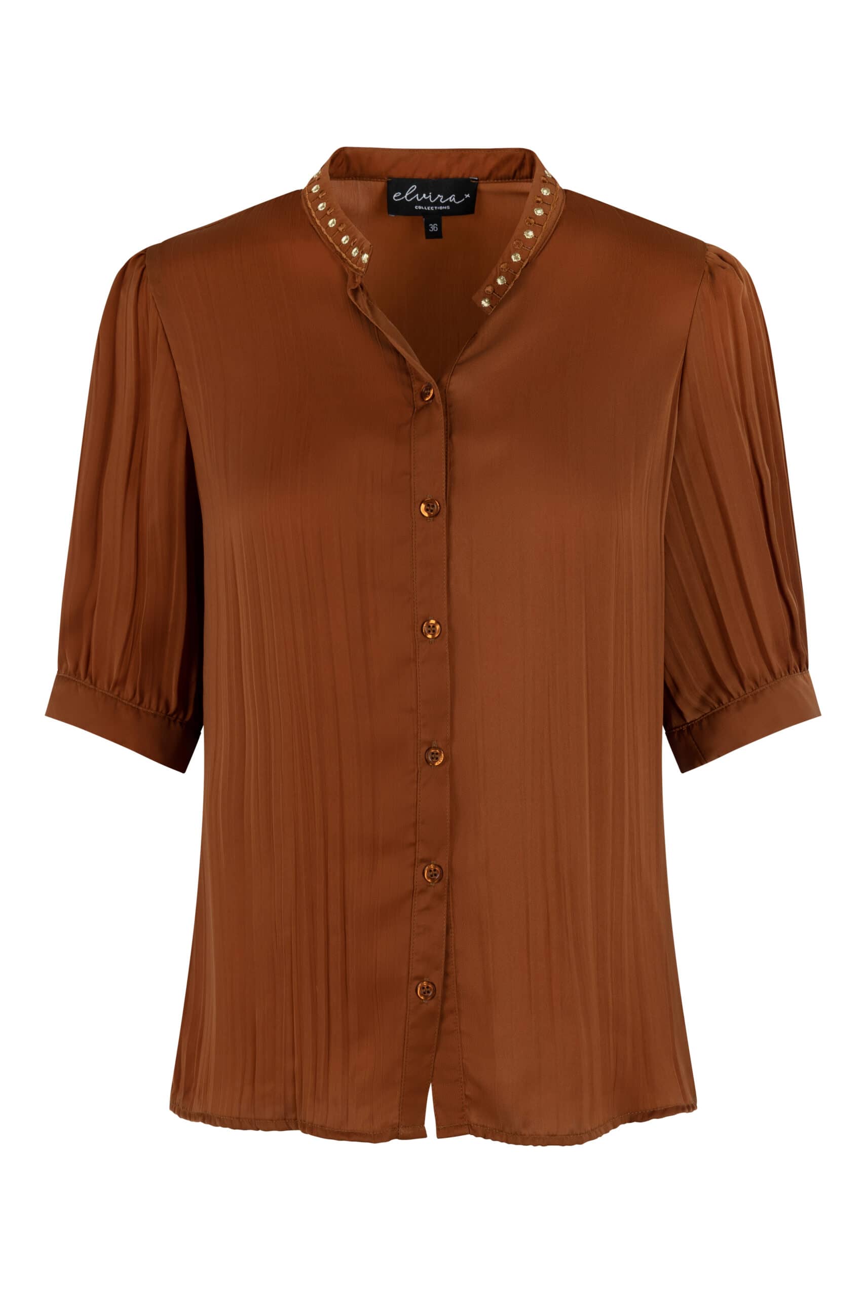 Blouse van Elvira met halflange mouwen, knoopsluiting en een ronde hals voorzien van sierdetails.