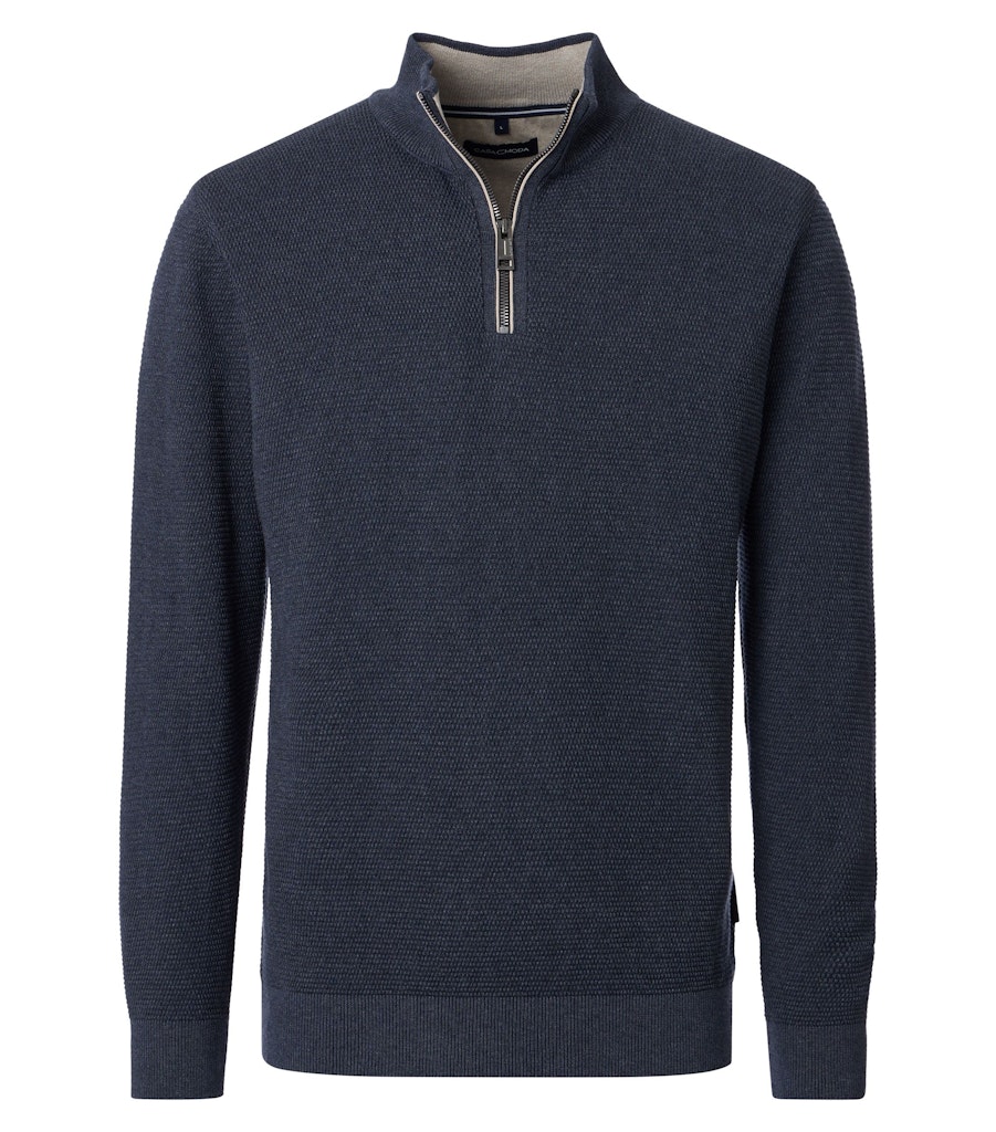 Trui van Casa Moda in een structuur dessin met lange mouwen, opstaande kraag voorzien van korte ritssluiting en ribgebreide boorden.