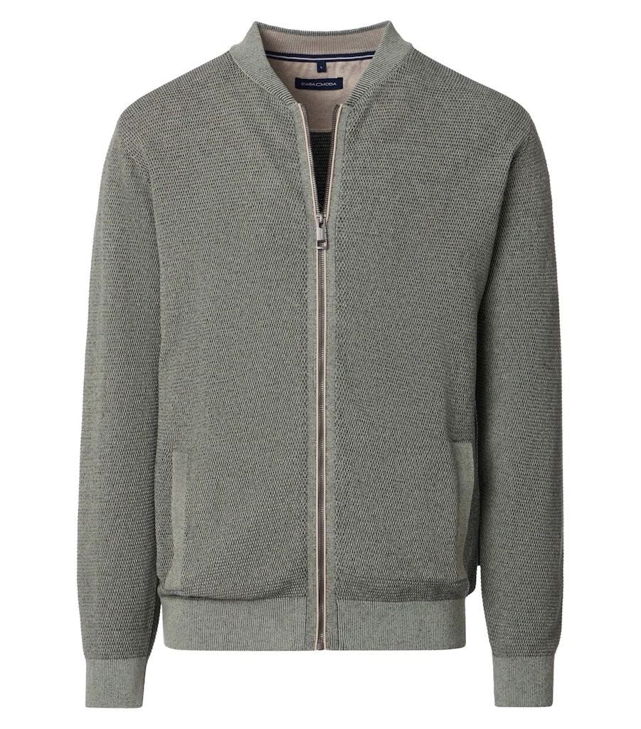 Vest van Casa Moda in een structuur dessin met lange mouwen, opstaande kraag, ritssluiting, steekzakken en ribgebreide boorden. Materiaal: Katoen 100%