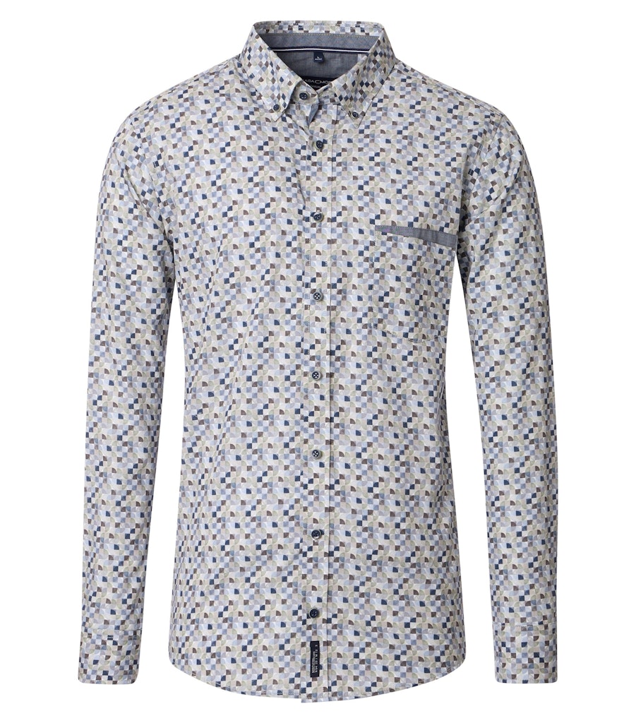 Casual fit overhemd van Casa Moda in een all-over dessin met lange mouwen, button-down kraag, knoopsluiting en een opgestikte borstzak. Materiaal: Katoen 100%