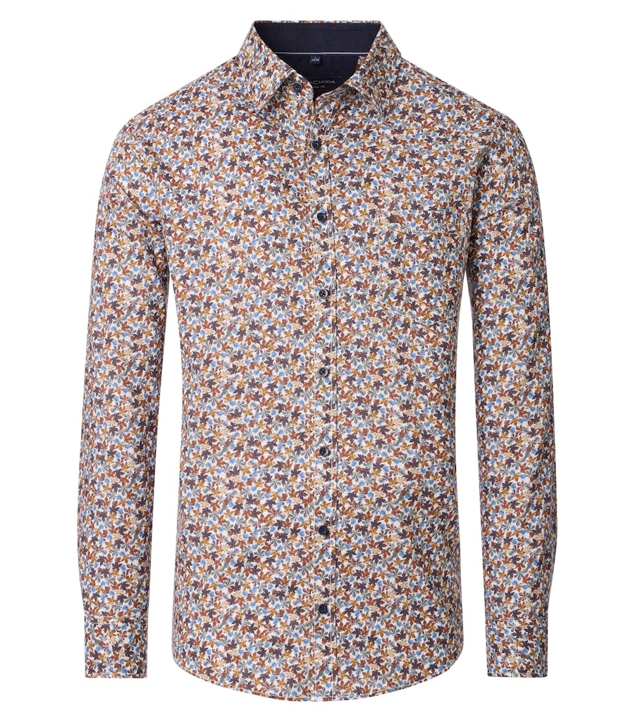 Casual fit overhemd van Casa Moda in een all-over dessin met lange mouwen, kraag, knoopsluiting en een opgestikte borstzak. Materiaal: Katoen 100%