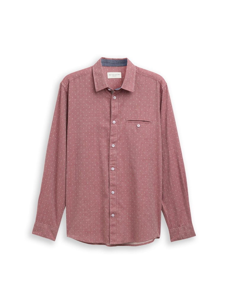Regular fit overhemd van Tom Tailor in een fijn geometrisch dessin met lange mouwen, kraag, knoopsluiting en een paspelzak op de linkerborst.