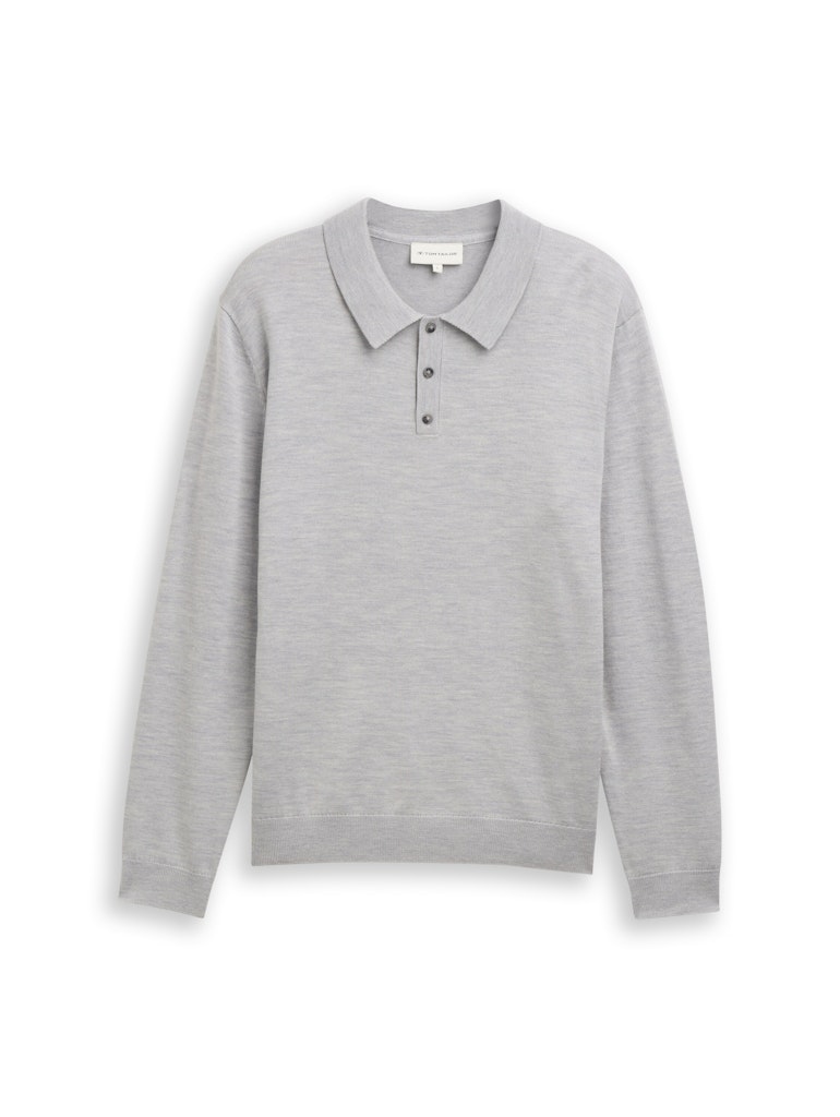 Trui van Tom Tailor met lange mouwen, kraag voorzien van korte knoopsluiting en ribgebreide boorden. Materiaal: Wol 56%| katoen 44%