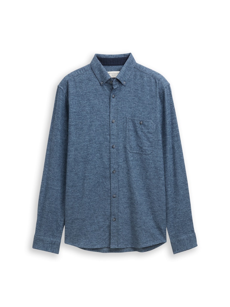 Regular fit overhemd van Tom Tailor in een gemêleerd dessin met lange mouwen, button-down kraag, knoopsluiting en een opgestikte borstzak.