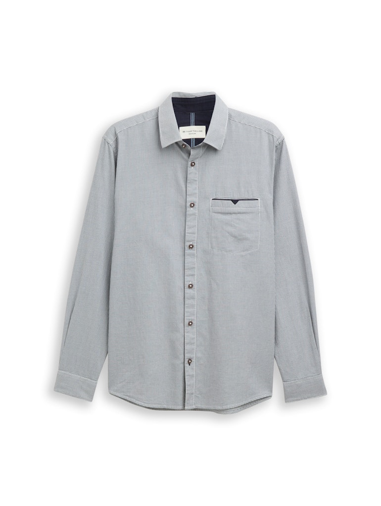 Overhemd van Tom Tailor in een subtiele structuur dessin met lange mouwen, kraag, knoopsluiting en een opgestikte borstzak. Materiaal: Katoen 100%