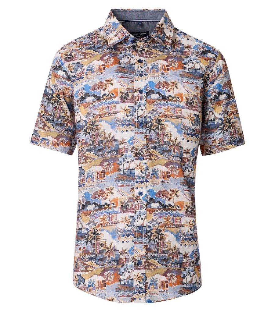 Overhemd van Casa Moda in een all-over dessin met korte mouwen, knoopsluiting en kent kraag. Materiaal: Katoen 100%