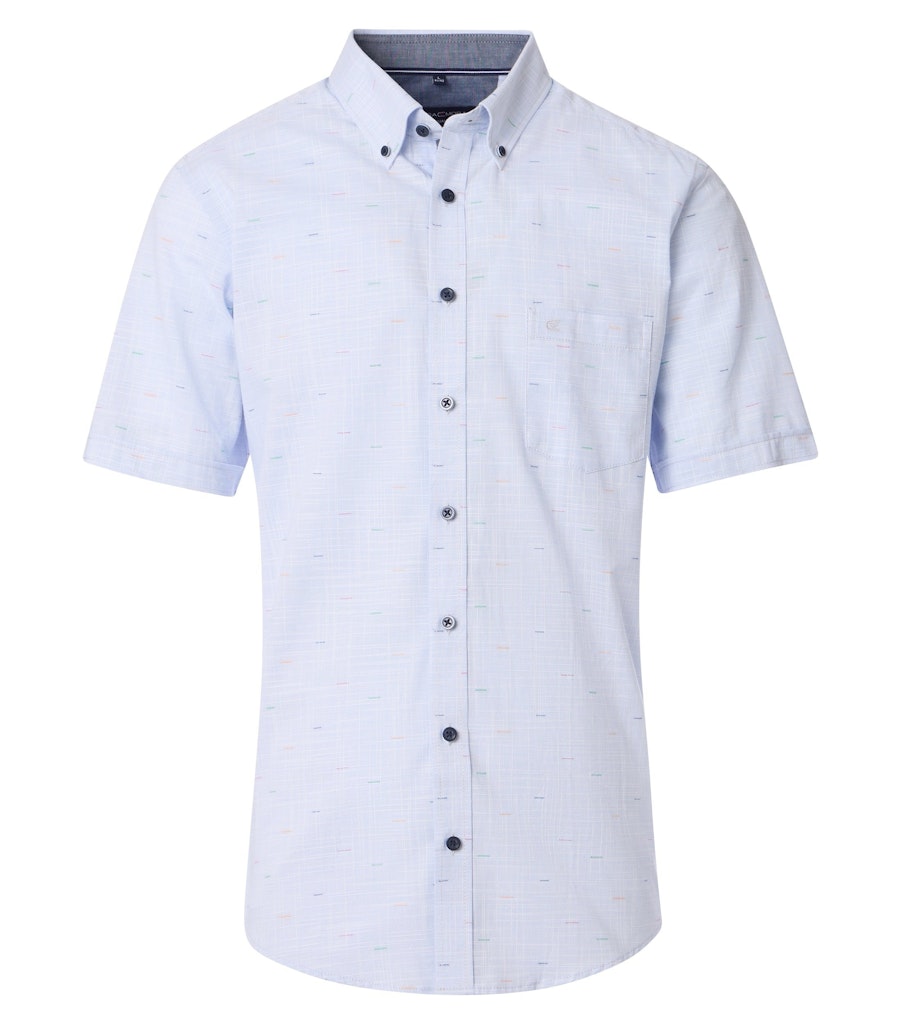 Overhemd van Casa Moda in een all-over dessin met korte mouwen, knoopsluiting, buttown down kraag en een opgestikte borstzak voorzien van geborduurd logo.