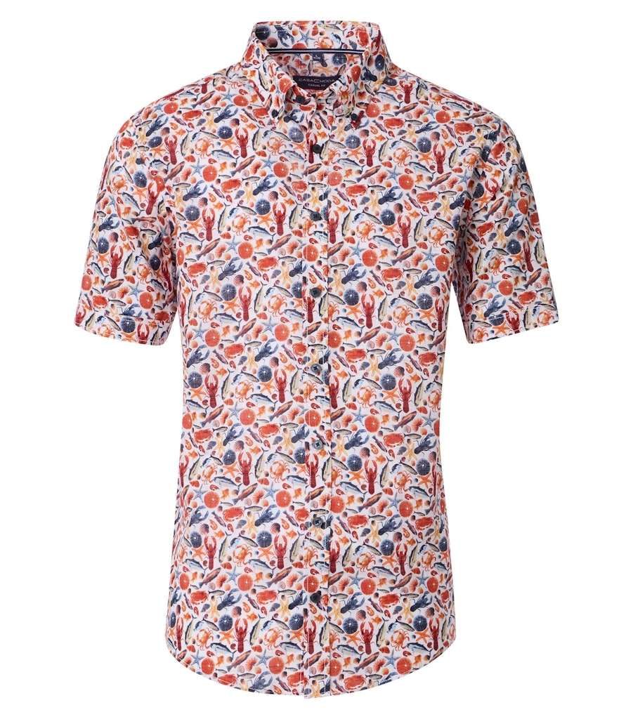 Overhemd van Casa Moda in een all-over dessin met korte mouwen, knoopsluiting en buttown down kraag. Materiaal: Katoen 100%