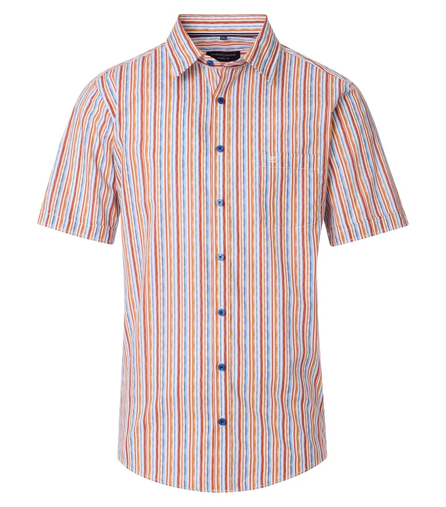 Gestreept overhemd van Casa Moda met korte mouwen, knoopsluiting, kent kraag en een opgestikte borstzak voorzien van geborduurd logo. Materiaal: Katoen 100%