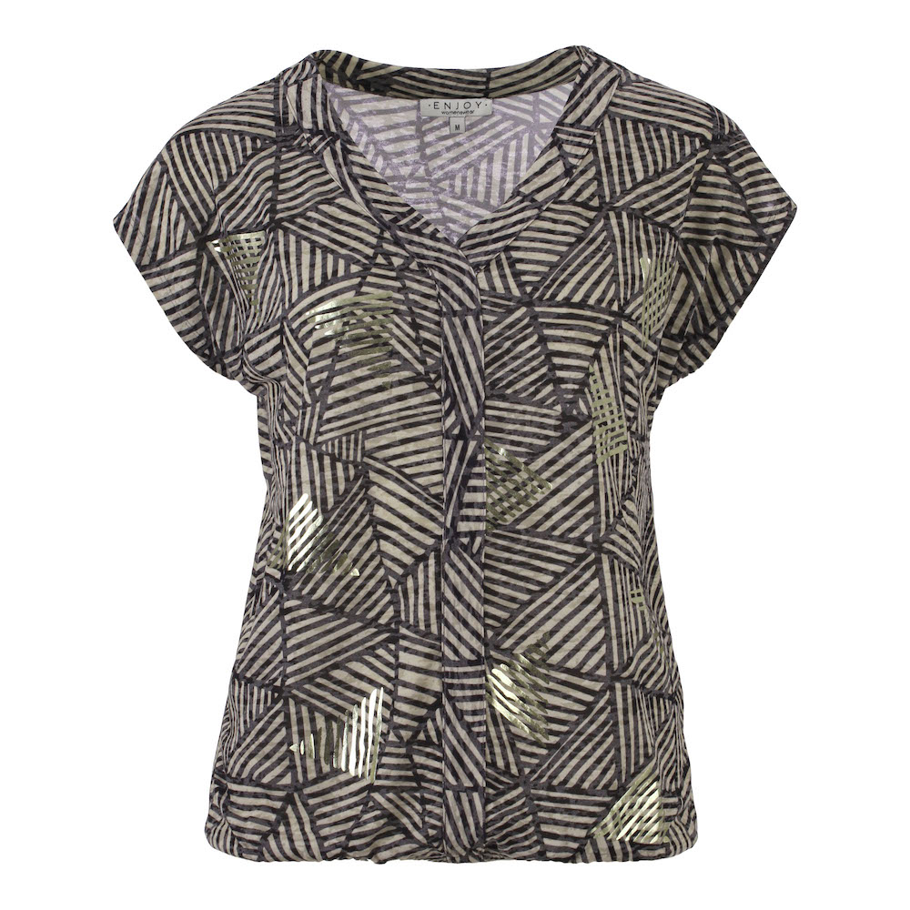 Blouson van Enjoy in een grafisch dessin met glanzende effecten, korte aangeknipte mouwen en een decoratieve V-hals. Materiaal: Viscose 50%| polyester 50%