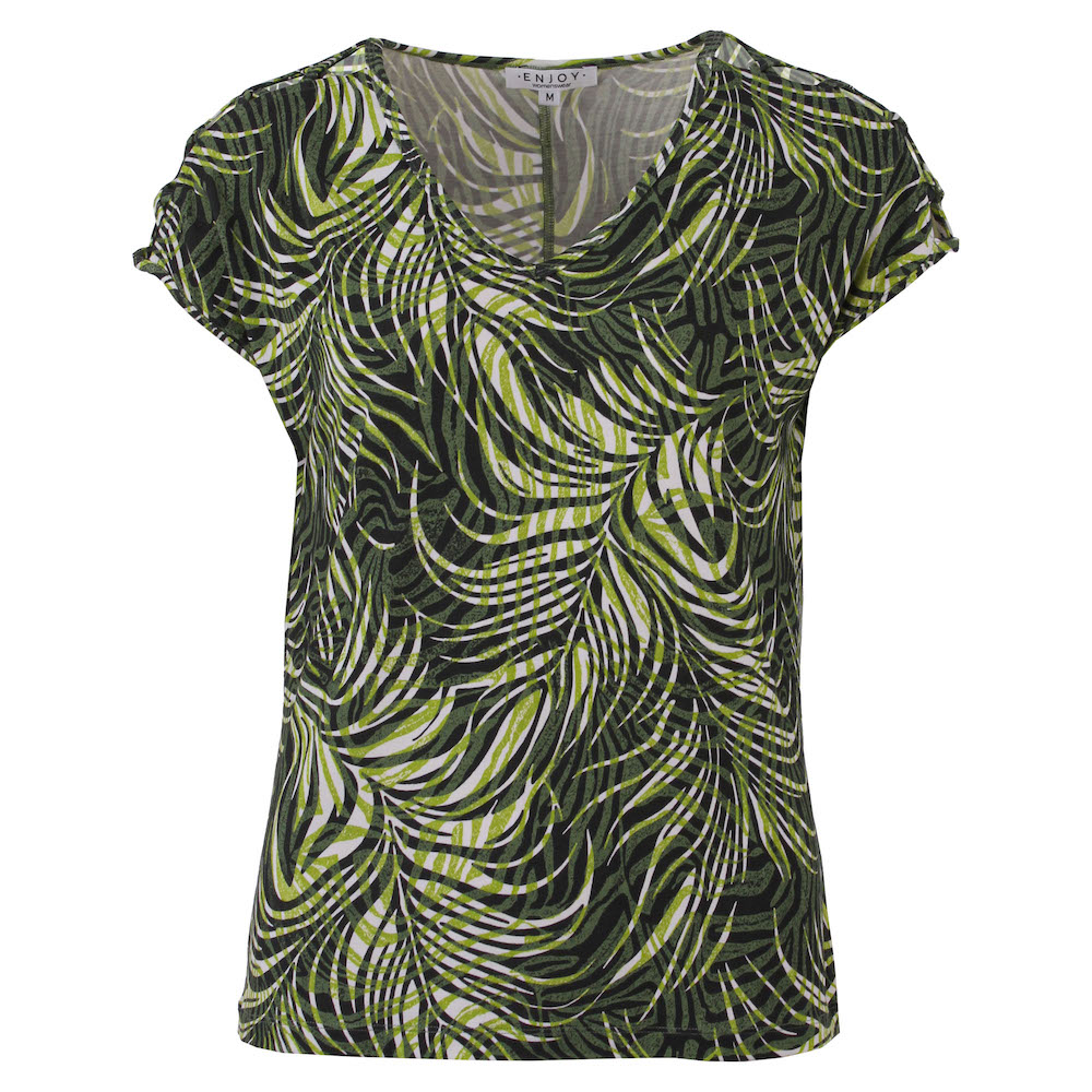 Shirt van Enjoy in een bladeren dessin met korte aangeknipte mouwen en een V-hals.