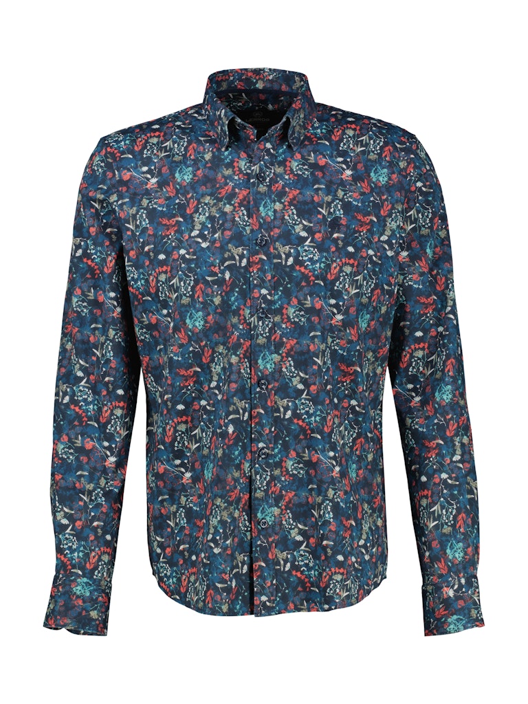 Overhemd van Lerros in een all-over dessin met lange mouwen, button-down kraag, knoopsluiting en een geborduurd logo op de linkerborst.