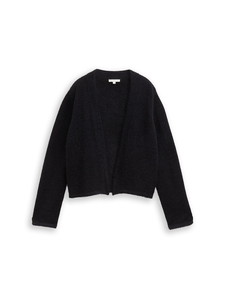 Openvallend vest van Tom Tailor van vezelgaren met lange mouwen voorzien van korte splitten. Materiaal: Katoen 75%| polyamide 25%